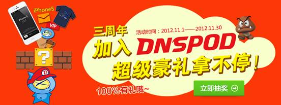DNSPod三周年活動專題:http://www.dnspod.cn/event/year2012