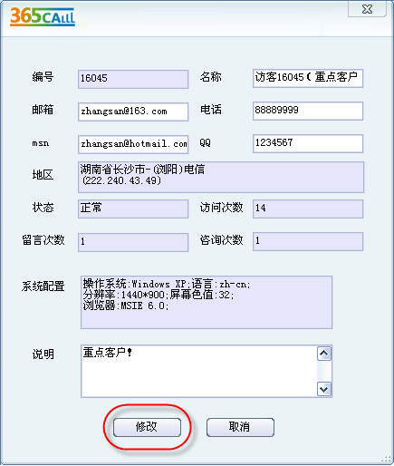 圖:訪客信息編輯窗口 _ 客服監(jiān)控窗口